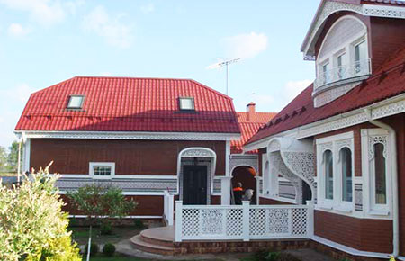 - Дизайн фасадов частных домов и коттеджей в стилях резного зодчества