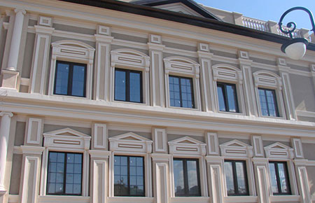 В портфолио "Фасад-проекта" представлено наибольшее число объектов, декорированных лепным декором из полиуретана в классических стилях.