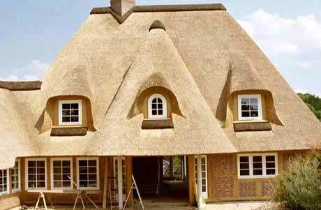 Крыша обеспечивает не только защитную функцию, но и является важным элементов оформления фасада. Современнй пример использования трационной соломенной крыши.
